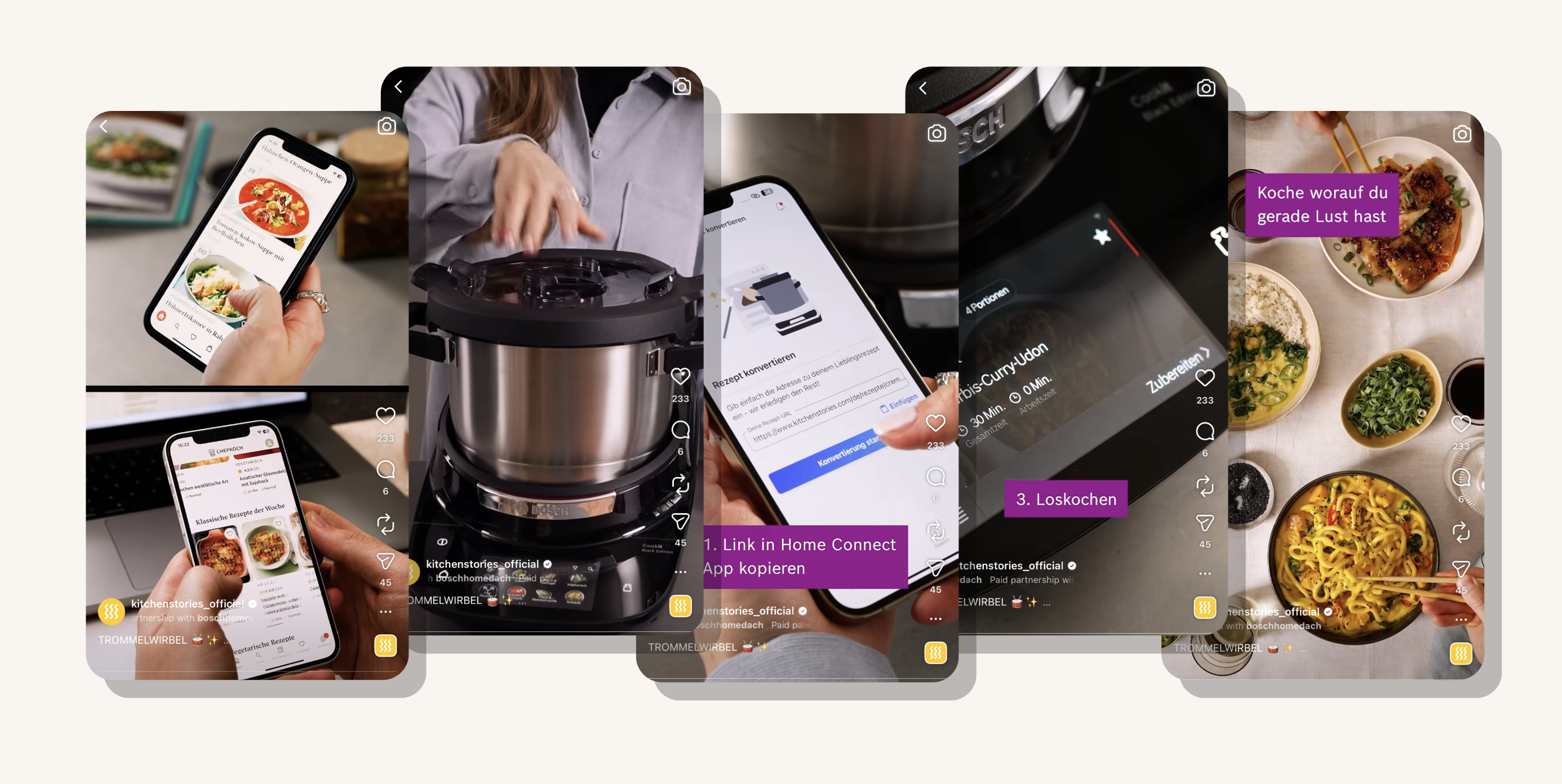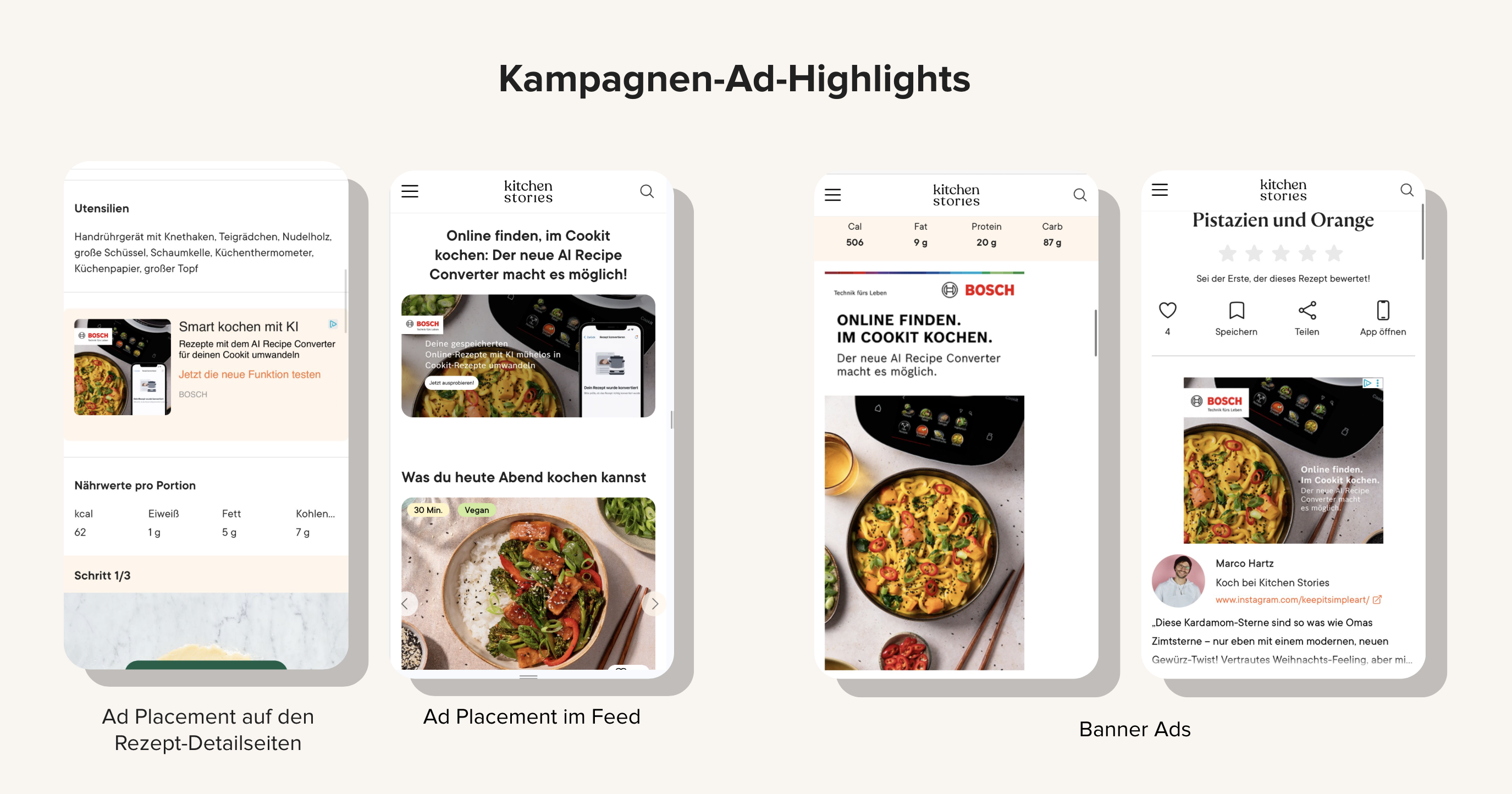 Über sechs Wochen führte die Kampagne das neue Cookit-Feature von Bosch auf allen Kitchen Stories Kanälen ein und kombinierte dabei nahtlos Website, App, Newsletter und Social Content mit Bannern, Native Ads und redaktionellen Assets, um maximale Reichweite zu erzielen, die Nutzer:innen zu begeistern und wertvolle Interaktionen zu fördern.